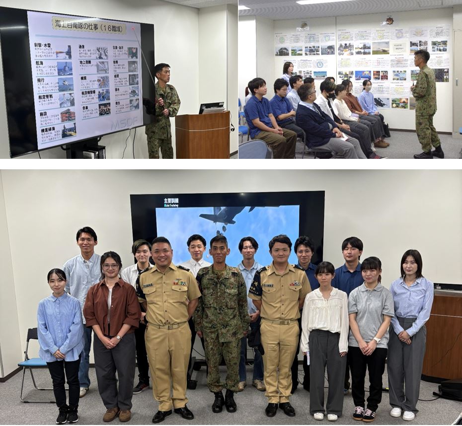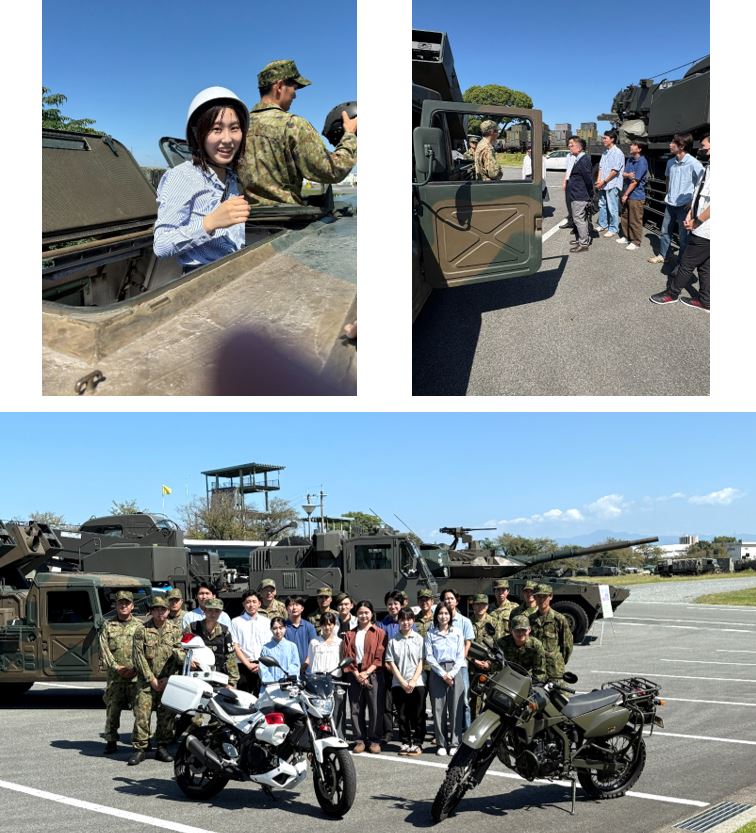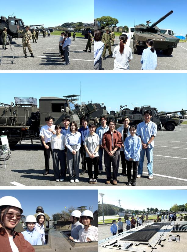 法学部ワーキングチームは、南西諸島の防衛の拠点である陸上自衛隊第8師団司令部を訪問し、『日米同盟を礎とする国防』に関するレクチャーをしていただきました。具体的には、「日米合同演習の目的と意義」等について、お話しいただき、そのあと、戦車を含む装備品の説明を受け、実際に試乗体験もさせていただきました。