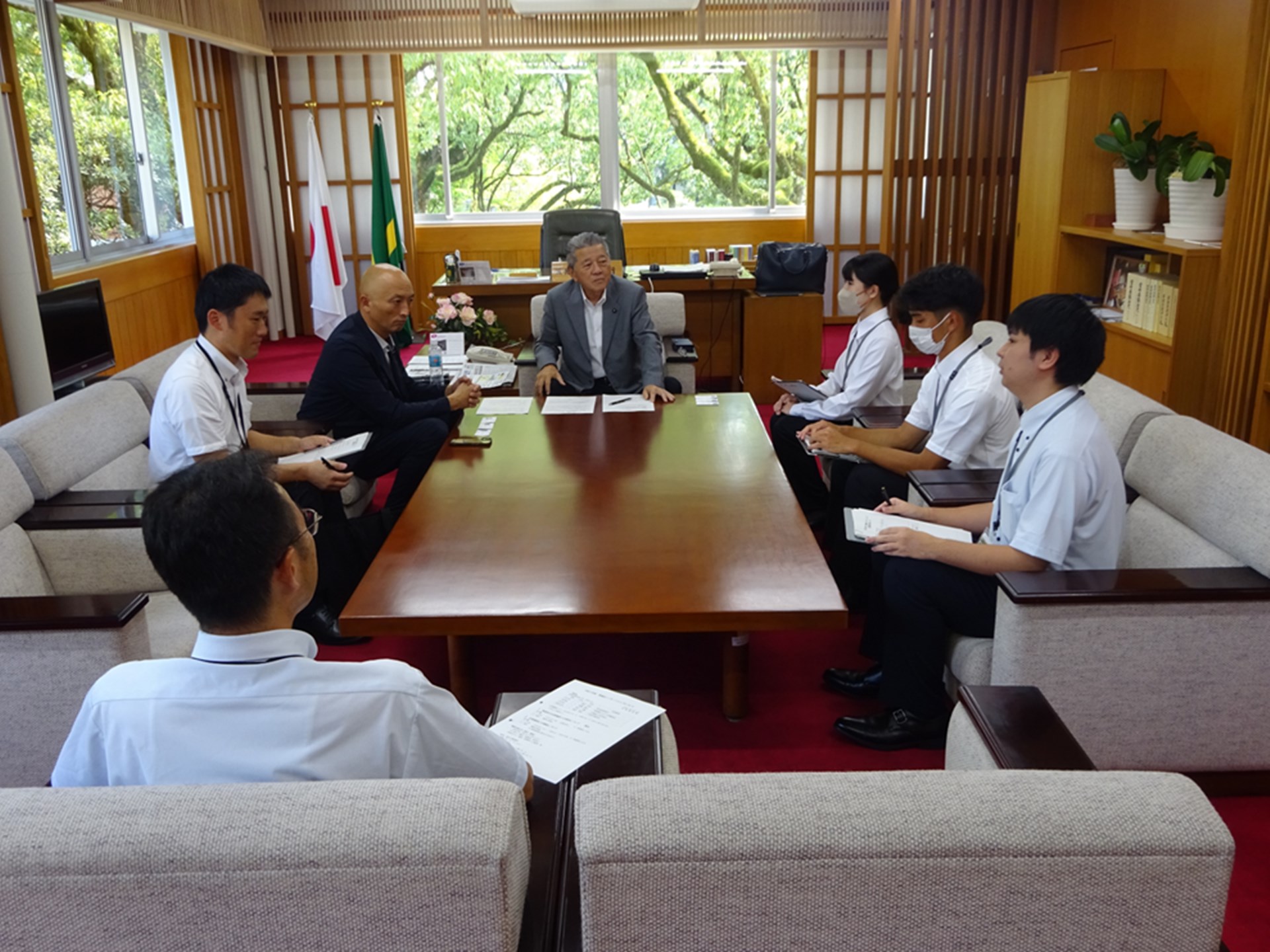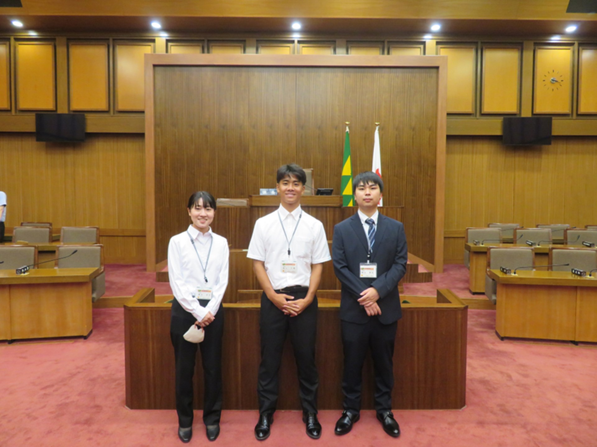 今年度も、3名の学生が参加してくれました。経営学部からは2年礒田勇紀さん(内田ゼミ)、法学部からは3年清永理沙さん(雨宮ゼミ)と2年當山大輔さん(村田ゼミ)です。9月に県議会が開催されるので、それに合わせての実施となりました。
